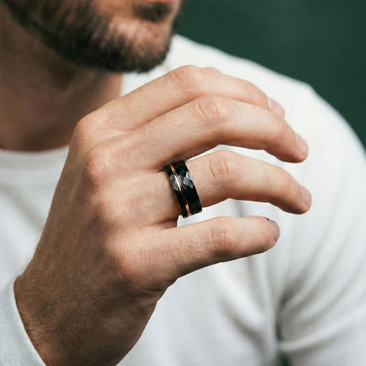 The Crucible - Hammered Black & Rose Gold Tungsten Ring (8mm)